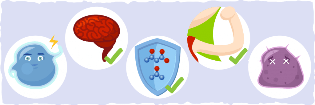- Effet antioxydant : L’utilisation des cétones comme carburant diminue la production de radicaux libres et de dérivés oxydants, protégeant ainsi le corps contre les dégâts cellulaires.